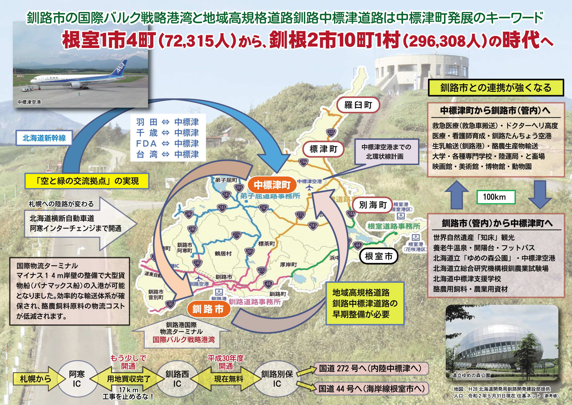 9番、髙橋善貞です。地域高規格道路釧路中標津道路整備促進期成会は機能しているのかを主題に3点に分けて質問させていただきます。 これまで平成 29 年3月定例会、令和3年6月定例会の2回、タイトルにあります地域高規格道路釧路中標津道路について質問させていただきました。現在は頭の地域がなくなって、高規格道路釧路中標津道路だそうです。 現在工事中である道東自動車道の阿寒インターチェンジから釧路西インターチェンジまでの 17 キロメートルが今年度開通して、札幌市から帯広市、釧路市そして高規格道路釧路中標津道路の起点であります釧路町別保インターチェンジまでがノンストップで行き来できる高速道路の環境が整備されます。 しかし、高規格道路釧路中標津道路は平成6年に道路の計画が決定してから 30 年が経過し、事業としては平成 17 年度の春別道路完成以降、根室管内の工事は約 20 年間行われておりません。 根室管内の住民からは、高規格道路釧路中標津道路の整備はもう終わったのかという疑問の声もあります。また、期成会には釧路根室管内の市町村議会も期成会の一員として参加していることから、大きな問題と捉えて今回の質問に至りました。 最初の質問は釧根トライアングル整備構想3路線の優先順位について質問いたします。 北海道横断道路釧路根室間と高規格道路根室中標津間、そして、今回質問している高規格道路釧路中標津道路の3つの道路を合わせて釧根トライアングル構想という名称で根室市の石垣市長を議長とする釧根トライアングル構想連絡会議が、昨年根室地方総合開発期成会の釧路、札幌、東京の陳情活動と併せて要望を行っております。 3年前、関係する根室管内4町として、緊急度重要度が高い釧路中標津道路整備の要請を優先的に行うべきと質問をしましたが、優先順位を決めるべきではなく、整備が必要な道路から順次進めていくと町長から御答弁いただきました。 しかし、昨年の6月定例会では、松村議員の国道 272 号線標津中標津間の高規格化の早期実現についての一般質問に対して、町長は優先順位はカーブが多く交通停滞を招いている根室中標津道路の中春別中標津間ではないかと考えているとの御答弁でした。 また、昨年の 11 月9日には国土交通省、財務省、地元選出国会議員に対して、北海道横断自動車道根室線の整備促進に関する要望として、釧路根室間の単独要望活動を根室市の石垣市長とともに西村町長も同行して行われています。 この要請活動は、例年行われているそうで、誰が見ても釧路根室間の事業に力点が置かれていることは明らかです。現実的にトライアングル構想の3つの路線に対する優先順位が3番目に位置付けされているせいか、町長の施政方針にも行政報告にも高規格道路釧路中標津道路という名称は、全くと言っていいほど出てきていません。 町長は高規格道路釧路中標津道路整備促進期成会の会長として、このような状況で期成会を構成する根室管内の標津町、羅臼町、別海町の各行政機関や議会、経済団体が納得していると思われているのか見解をお聞かせください。 ◆町長答弁 髙橋議員御質問の釧根トライアングル整備構想3路線の優先順位について御答弁申し上げます。 まず、高規格道路釧路中標津道路の整備状況につきましては、釧根トライアングル整備構想連絡会議において、根室地方総合開発期成会との合同要望により、令和3年3月に事業化が決定しました上春別防雪事業が本年度よりポンオンネベツ川橋下部工事から着手されます。 また、上春別と西春別の一部であります約 2 キロの切削オーバーレイが本年度行われる予定でありまして、釧路開発建設部へ陳情しておりました大型農業機械等の通行により損傷している路肩の修繕につきましても、順次着手されているところであります。 釧根トライアングル整備構想は、高規格道路である北海道横断自動車道根室線、釧路中標津道路、根室中標津道路の3路線と道東縦貫道路の整備促進を図り、都市機能を相互補完連携するネットワークとして官民挙げての取組を推進するもので、いずれの路線も釧路根室圏域の振興発展に欠かすことの出来ない重要な社会基盤として、3路線それぞれの早期対策を講じる必要性を踏まえて陳情要望を行っております。 また、北海道自動車道釧路地区早期建設促進期成会と合同で実施しております北海道横断自動車道根室線の整備促進に関する要望につきましては、私は北海道横断自動車道路釧路根室間建設促進期成会の副会長であるとともに、周辺地域を商業圏域とする本町の持つ拠点性という特性から、根室管内全体の振興発展することが重要であるとの考えのもと要望活動を行っております。 現状の整備の実態としては沿岸の防災上の観点から、北海道横断自動車道根室線、尾幌・糸魚沢間の事業が進められておりますが、議員が申します釧路中標津道路の優先順位が3番目に位置付けされているとは全く考えておりません