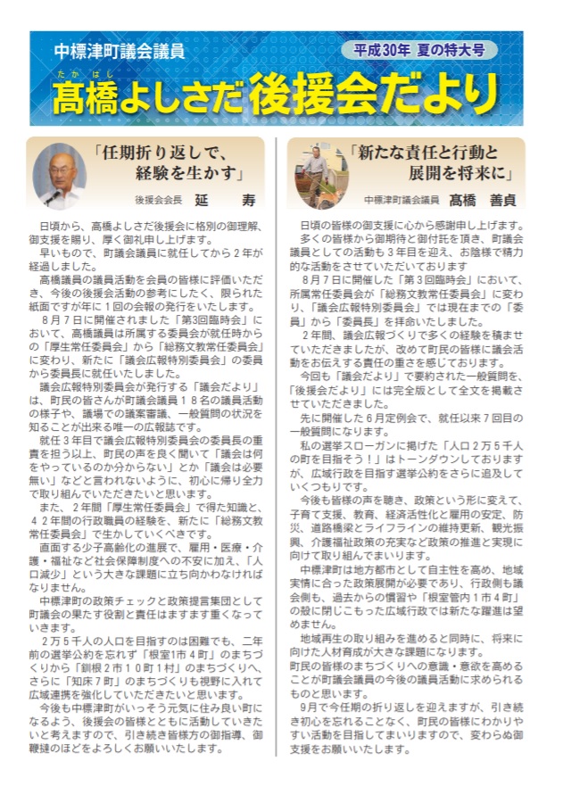 | 後援会だより2号PDF (平成30年 夏の特大号) |