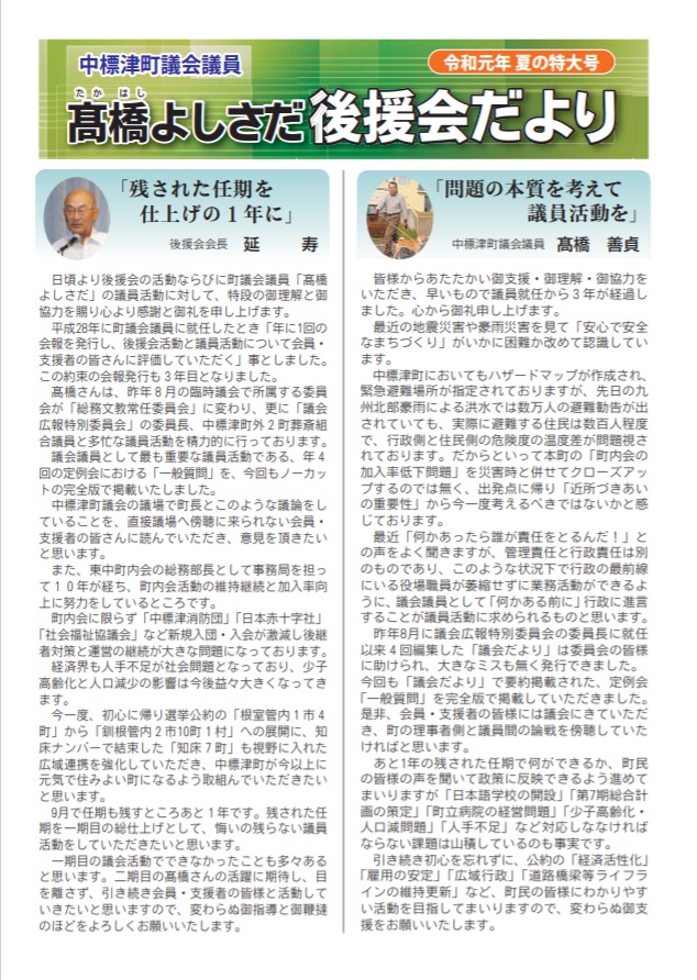後援会だより3号PDF (令和元年 夏の特大号) |